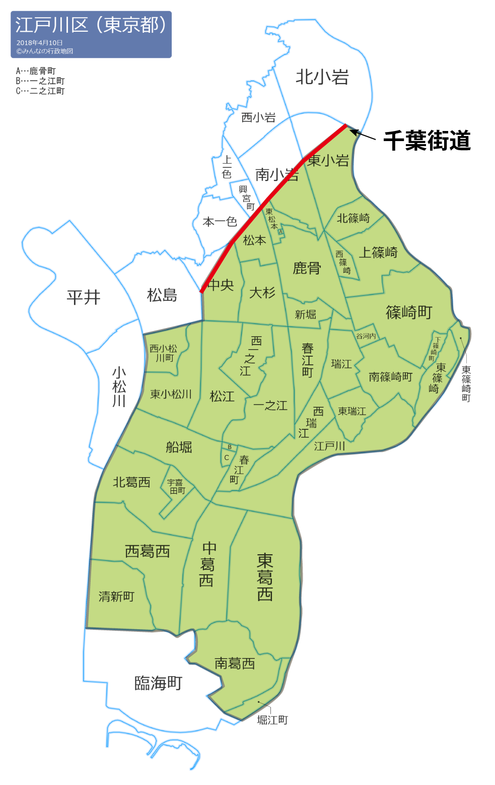 ※中央・南小岩・東小岩については千葉街道(国道14号線)よりも南側まで